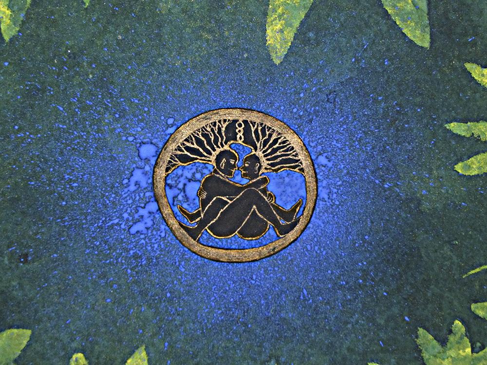 Pariskunta tilasi makuuhuoneeseensa näyttävän kokoisen maalauksen, joka kuvastaisi heidän aluksi salaista (tapasivat kumpikin eronneena nettitreffeillä), mutta sittemmin kukkeaksi muuttunutta suhdettaan. Puutarhan keskellä on lähde,