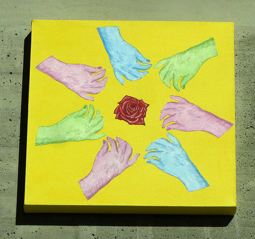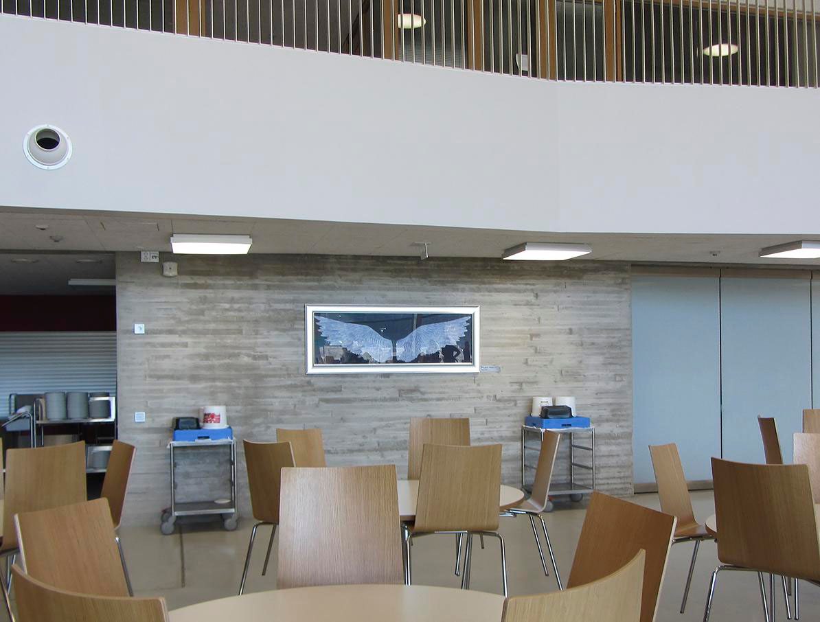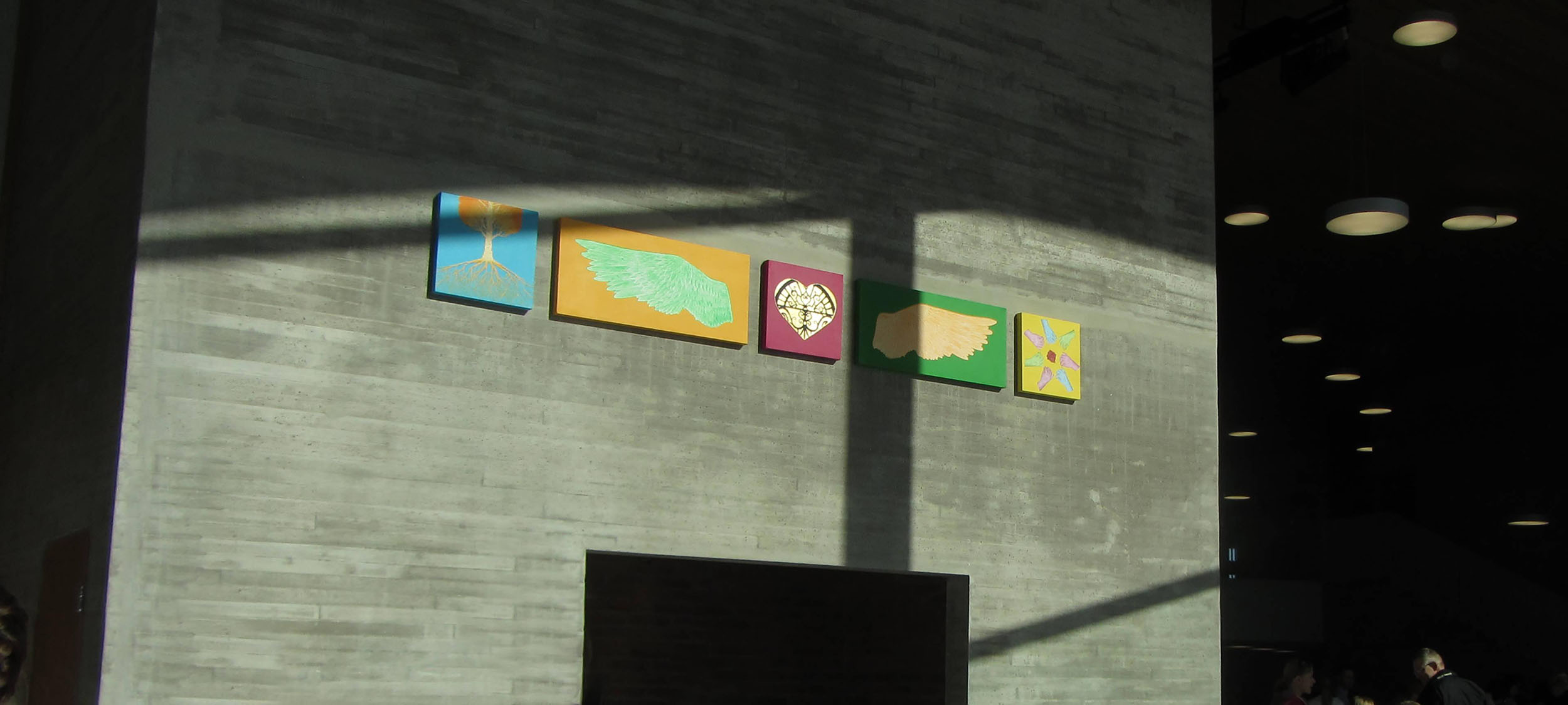 Koulun rehtori Hanna Sarakorpi tilasi minulta teoksen aulan betoniseinämään. Koska tila muistutti linnaa, ideoin että koulun teemat voisivat esiintyä siinä kuin entisaikojen linnoissa vaakunat niiden eteisaulassa.Y